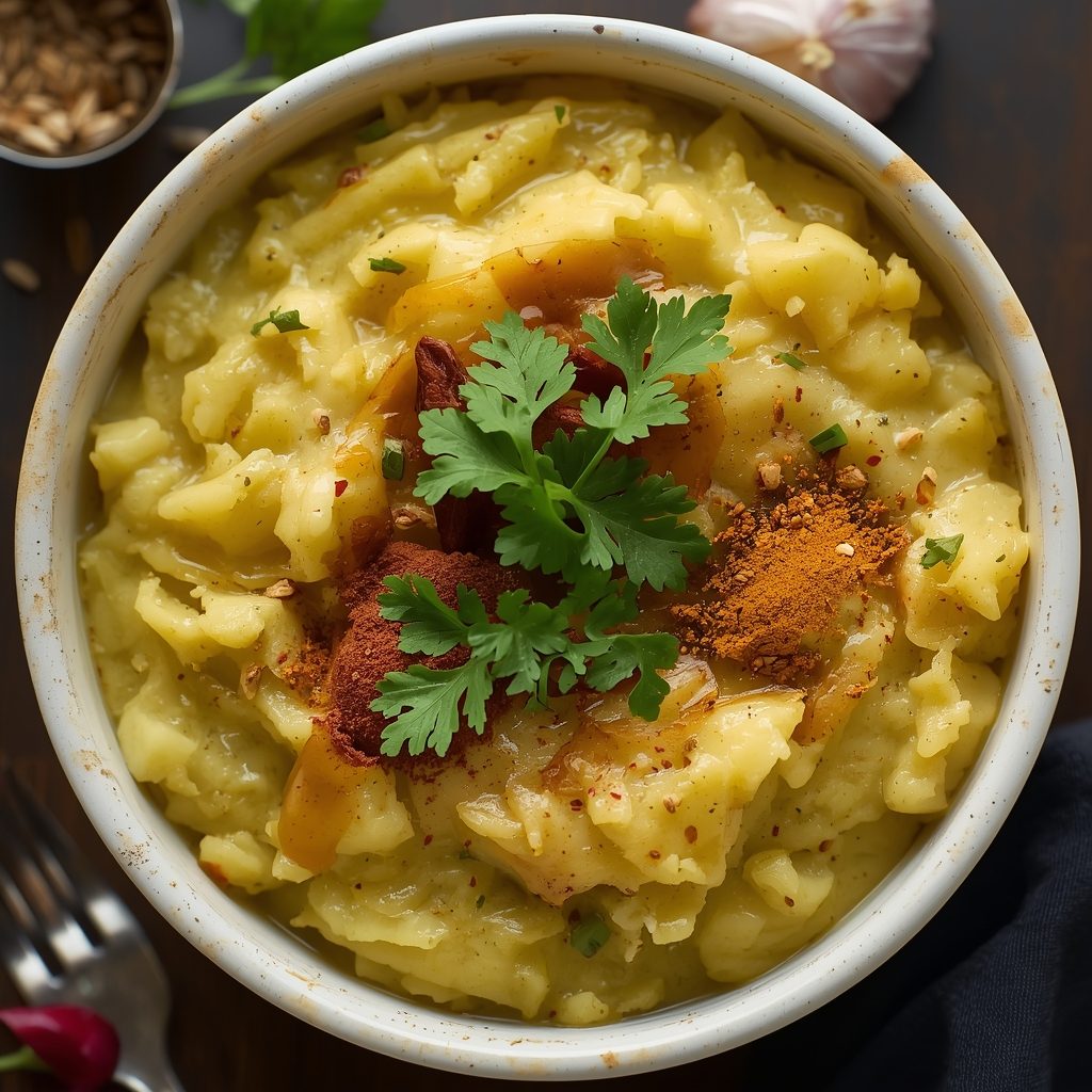 Mashed potatoes with aromatic spices, a simple yet flavorful side dish.