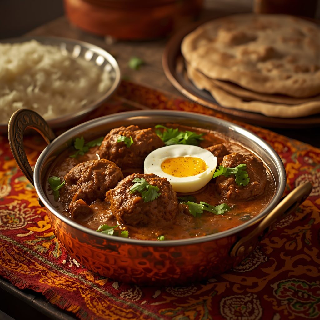 Chicken cooked in a thick, spiced gravy with onions, tomatoes, and yogurt.